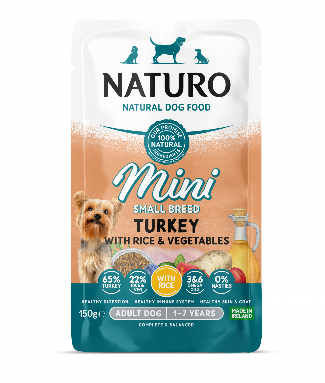 Pouch Naturo Dog Adult Mini cu Carne de Curcan si Orez 150 Gr 0.15 kg