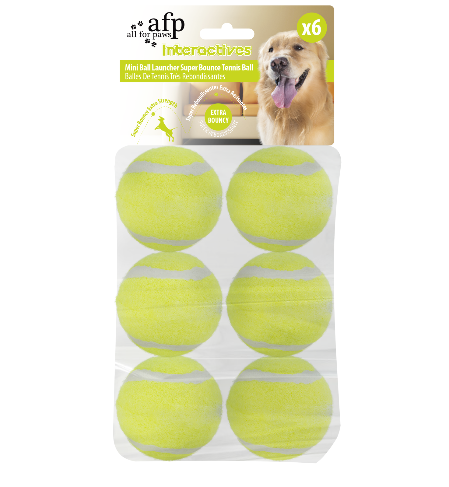 Setul de 6 mingi Super Bounce este perfect pentru ore intregi de joaca de adus mingea alaturi de prietenul tau patruped. Mingile sunt realizate din cauciuc premium, foarte elastic, oferind distractie de lunga durata. Se potrivesc perfect cu Lansatorul de Mingi Afp3196 pentru joaca activa si interactiva.