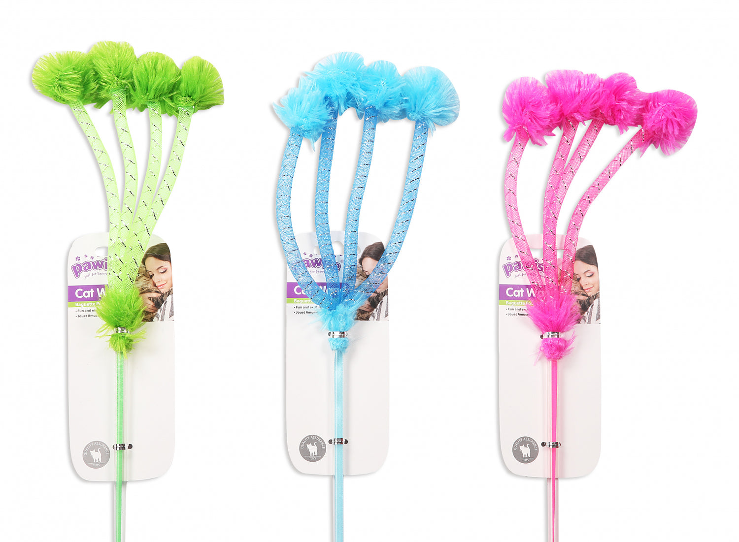 De fapt, este o bagheta cu trei ciucuri viu colorati, realizati din materiale durabile, care iti garanteaza ore nesfarsite de distractie si amuzament in compania micutei tale feline.