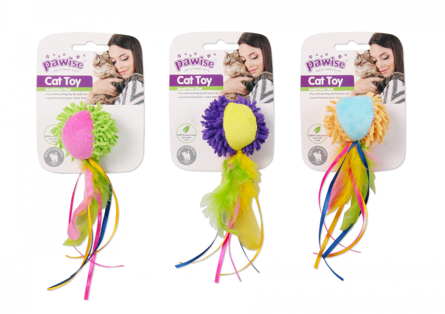 Mingea cu pene Pawise este o jucarie pe care orice pisicuta o va adora.