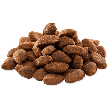 - 45-55% adaos de carne uscata de pui, fara os, ceea ce asigura o mai buna toleranta si palatabilitate crescuta.