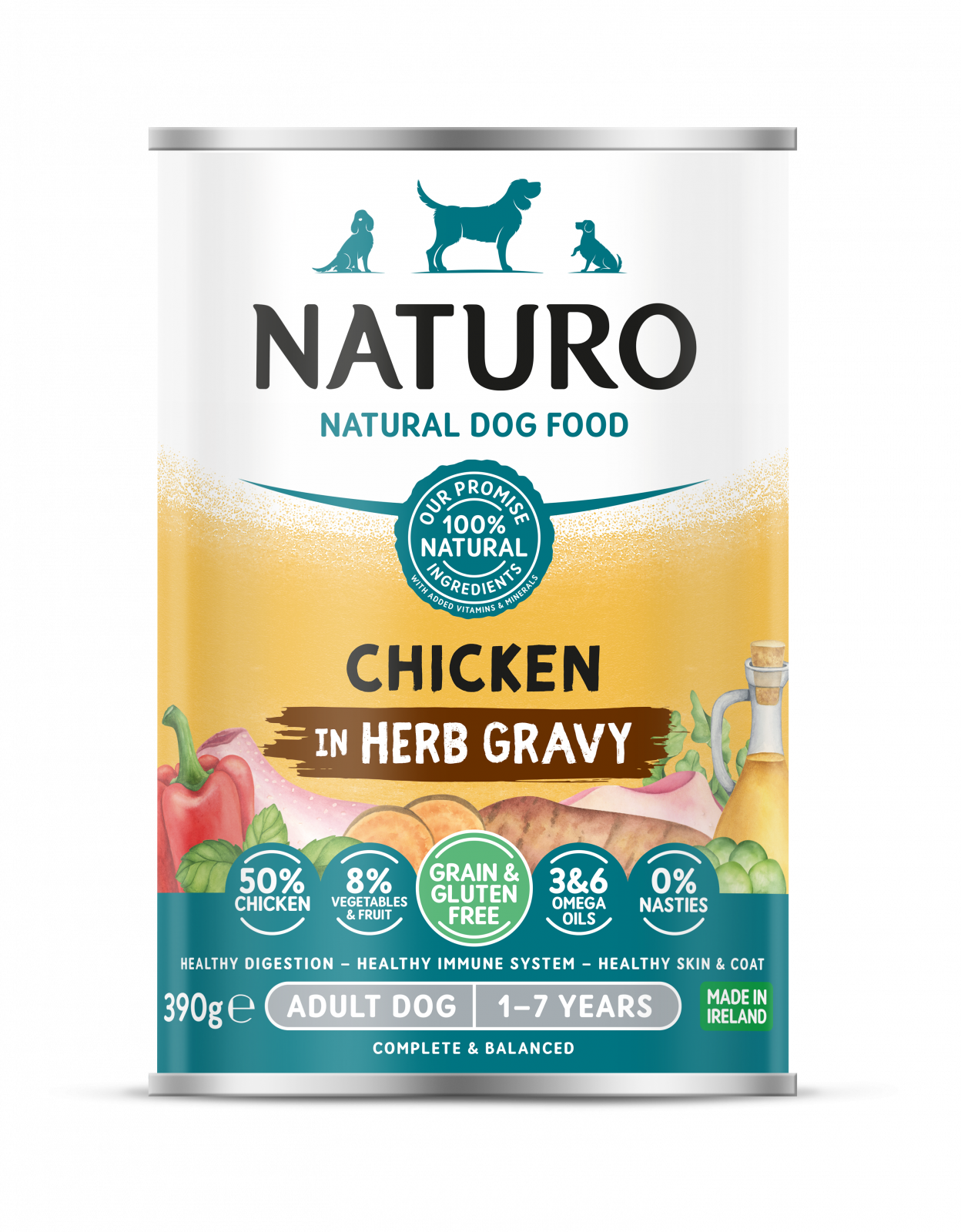 Conserva Naturo Adult cu Carne de Pui, Fructe si Legume in Sos cu Ierburi Aromatice 390g 0.39 kg